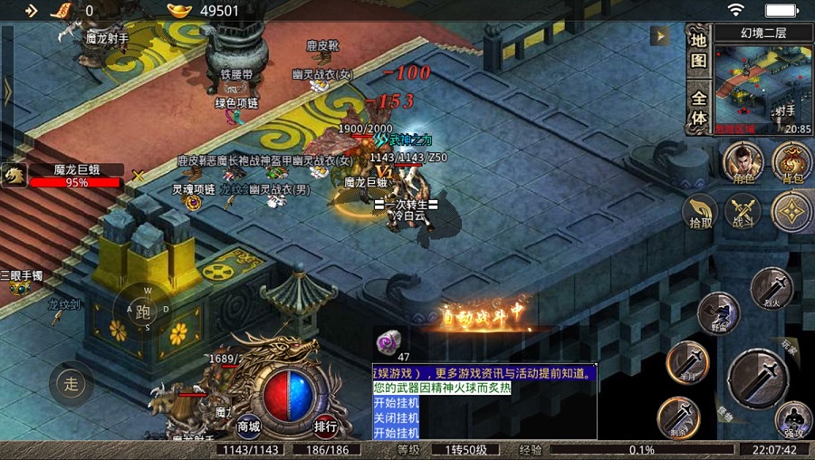 2、有一个是手机电脑都能玩的《龙门神途》这个是目前玩的人最多的,画面很简洁,没有充值系统,绿色的玩法吸引着大批玩家,这个是手机端的画质,可以看出来很火爆。